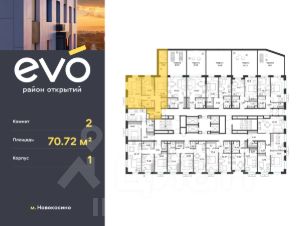 Продается двухкомнатная квартира 70.72 кв.м. в жилом комплексе ЭВО на 2 этаже по адресу: Московская область, г. Реутов, ул. Комсомольская. Скидка 15% на выделенный пул двухкомнатных и трёхкомнатных квартир с готовностью в 2026 году!*ЭВО - проект комфорт-класса от девелопера Dogma. Каждый житель сможет открыть для себя максимум возможностей. Совершенствоваться во всех направлениях: физическом, эмоциональном и материальном. В ЭВО можно открыть для себя новые виды спорта, найти единомышленников по хобби, партнеров по бизнесу, развивать в детях новые грани, наслаждаться природой и лаконичной архитектурой.Более 6 га благоустройства в первой очереди!- Зеленый двор без машин, кленовая аллея для прогулок.- Нейродинамические площадки для детей разных возрастов.- Workout зона, столы для пинг-понга, места для занятия йогой. велодорожки и дорожки для скандинавской ходьбы.- Детский сад на 180 мест и школа на 750 мест.- Кроссбукинг.- Лобби с зоной ожидания, колясочной и лапомойкой.- Магазины и кафе на первых этажах.БЕЗОПАСНОСТЬ- Закрытая территория.- Круглосуточное видеонаблюдение.- Контроль доступа.РАСПОЛОЖЕНИЕПешком- 7 минут до станции Реутов.- 20 минут до метро Новокосино.На машине- 4 минуты до МКАД.- 6 минут до шоссе Энтузиастов.- 9 минут до Носовихинское шоссе.- 13 минут до МСД (Московский скоростной диаметр).СОЦИАЛЬНАЯ ИНФРАСТРУКТУРАВ первой очереди предусмотрено строительство детского сада на 180 мест и школы на 750 учащихся. В 10 минутах ходьбы от ЭВО находится детский технопарк ''Изобретариум'', в котором более 60 научных секции: от IT до промышленного дизайна. Для творческих ребят рядом есть художественная и музыкальные школы, хоровая студия.ОКРУЖЕНИЕ- Реутовский центральный парк, Александровский сквер, Фабричный пруд.- ТЦ ''Экватор'', ТК ''Шоколад''.- Спортивный комплекс ''Старт'', Ледовый комплекс ''Реутов Арена''.- Музей-усадьба ''Кусково''.*Акция действует до 15.02.2026. Подробности уточняйте по телефону.