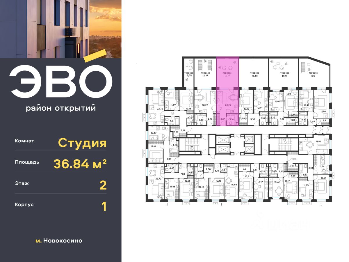 Продается студия 36.84 кв.м. в жилом комплексе ЭВО на 2 этаже по адресу: Московская область, г. Реутов, ул. Комсомольская. Скидка 10% при полной оплате!* ЭВО - проект комфорт-класса от девелопера Dogma. Каждый житель сможет открыть для себя максимум возможностей. Совершенствоваться во всех направлениях: физическом, эмоциональном и материальном. В ЭВО можно открыть для себя новые виды спорта, найти единомышленников по хобби, партнеров по бизнесу, развивать в детях новые грани, наслаждаться природой и лаконичной архитектурой. Более 6 га благоустройства в первой очереди! - Зеленый двор без машин, кленовая аллея для прогулок. - Нейродинамические площадки для детей разных возрастов. - Зона уличных тренажеров, столы для пинг-понга, места для занятия йогой. велодорожки и дорожки для скандинавской ходьбы. - Детский сад на 180 мест и школа на 750 мест. - Зона книгообмена - Лобби с зоной ожидания, колясочной и лапомойкой. - Магазины и кафе на первых этажах. БЕЗОПАСНОСТЬ - Закрытая территория. - Круглосуточное видеонаблюдение. - Контроль доступа. РАСПОЛОЖЕНИЕ Пешком - 7 минут до станции Реутов. - 20 минут до метро Новокосино. На машине - 4 минуты до МКАД. - 6 минут до шоссе Энтузиастов. - 9 минут до Носовихинское шоссе. - 13 минут до МСД (Московский скоростной диаметр). СОЦИАЛЬНАЯ ИНФРАСТРУКТУРА В первой очереди предусмотрено строительство детского сада на 180 мест и школы на 750 учащихся. В 10 минутах ходьбы от ЭВО находится детский технопарк ''Изобретариум'', в котором более 60 научных секции: от IT до промышленного дизайна. Для творческих ребят рядом есть художественная и музыкальные школы, хоровая студия. ОКРУЖЕНИЕ - Реутовский центральный парк, Александровский сквер, Фабричный пруд. - ТЦ ''Экватор'', ТК ''Шоколад''. - Спортивный комплекс ''Старт'', Ледовый комплекс ''Реутов Арена''. - Музей-усадьба ''Кусково''. *Подробности уточняйте по телефону.