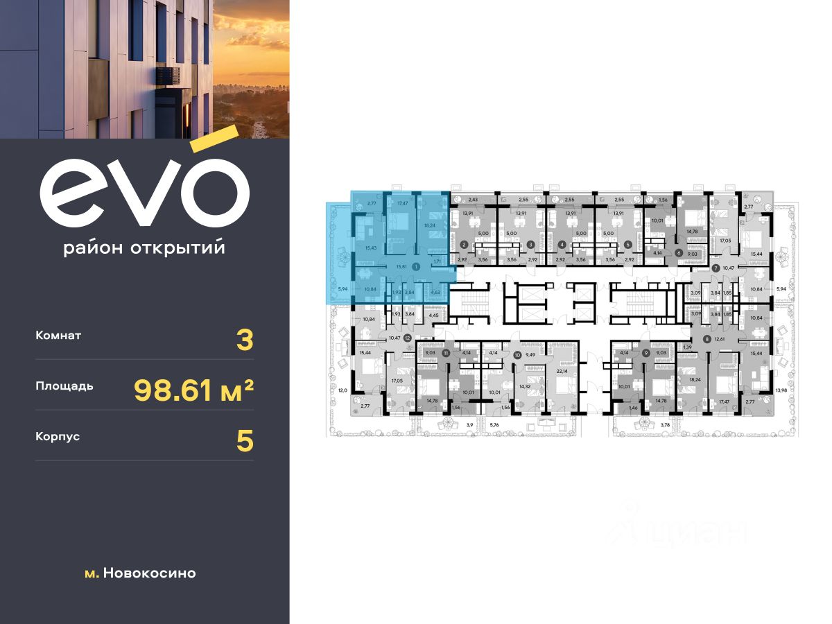 Продается трекомнатная квартира 98.61 кв.м. в жилом комплексе EVO на 2 этаже по адресу: Московская область, г. Реутов, ул. Комсомольская. Скидка 10% при полной оплате!* EVO - проект комфорт-класса от девелопера Dogma. Каждый житель сможет открыть для себя максимум возможностей. Совершенствоваться во всех направлениях: физическом, эмоциональном и материальном. В EVO можно открыть для себя новые виды спорта, найти единомышленников по хобби, партнеров по бизнесу, развивать в детях новые грани, наслаждаться природой и лаконичной архитектурой. Более 6 га благоустройства в первой очереди! - Зеленый двор без машин, кленовая аллея для прогулок. - Нейродинамические площадки для детей разных возрастов. - Workout зона, столы для пинг-понга, места для занятия йогой. велодорожки и дорожки для скандинавской ходьбы. - Детский сад на 180 мест и школа на 750 мест. - Кроссбукинг. - Лобби с зоной ожидания, колясочной и лапомойкой. - Магазины и кафе на первых этажах. БЕЗОПАСНОСТЬ - Закрытая территория. - Круглосуточное видеонаблюдение. - Контроль доступа. РАСПОЛОЖЕНИЕ Пешком - 7 минут до станции Реутов. - 20 минут до метро Новокосино. На машине - 4 минуты до МКАД. - 6 минут до шоссе Энтузиастов. - 9 минут до Носовихинское шоссе. - 13 минут до МСД (Московский скоростной диаметр). СОЦИАЛЬНАЯ ИНФРАСТРУКТУРА В первой очереди предусмотрено строительство детского сада на 180 мест и школы на 750 учащихся. В 10 минутах ходьбы от EVO находится детский технопарк ''Изобретариум'', в котором более 60 научных секции: от IT до промышленного дизайна. Для творческих ребят рядом есть художественная и музыкальные школы, хоровая студия. ОКРУЖЕНИЕ - Реутовский центральный парк, Александровский сквер, Фабричный пруд. - ТЦ ''Экватор'', ТК ''Шоколад''. - Спортивный комплекс ''Старт'', Ледовый комплекс ''Реутов Арена''. - Музей-усадьба ''Кусково''. *Подробности уточняйте по телефону.