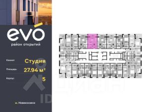 Продается студия 27.94 кв.м. в жилом комплексе EVO на 21 этаже по адресу: Московская область, г. Реутов, ул. Комсомольская. Скидка 10% при полной оплате!*EVO - проект комфорт-класса от девелопера Dogma. Каждый житель сможет открыть для себя максимум возможностей. Совершенствоваться во всех направлениях: физическом, эмоциональном и материальном. В EVO можно открыть для себя новые виды спорта, найти единомышленников по хобби, партнеров по бизнесу, развивать в детях новые грани, наслаждаться природой и лаконичной архитектурой.Более 6 га благоустройства в первой очереди!- Зеленый двор без машин, кленовая аллея для прогулок.- Нейродинамические площадки для детей разных возрастов.- Workout зона, столы для пинг-понга, места для занятия йогой. велодорожки и дорожки для скандинавской ходьбы.- Детский сад на 180 мест и школа на 750 мест.- Кроссбукинг.- Лобби с зоной ожидания, колясочной и лапомойкой.- Магазины и кафе на первых этажах.БЕЗОПАСНОСТЬ- Закрытая территория.- Круглосуточное видеонаблюдение.- Контроль доступа.РАСПОЛОЖЕНИЕПешком- 7 минут до станции Реутов.- 20 минут до метро Новокосино.На машине- 4 минуты до МКАД.- 6 минут до шоссе Энтузиастов.- 9 минут до Носовихинское шоссе.- 13 минут до МСД (Московский скоростной диаметр).СОЦИАЛЬНАЯ ИНФРАСТРУКТУРАВ первой очереди предусмотрено строительство детского сада на 180 мест и школы на 750 учащихся. В 10 минутах ходьбы от EVO находится детский технопарк ''Изобретариум'', в котором более 60 научных секции: от IT до промышленного дизайна. Для творческих ребят рядом есть художественная и музыкальные школы, хоровая студия.ОКРУЖЕНИЕ- Реутовский центральный парк, Александровский сквер, Фабричный пруд.- ТЦ ''Экватор'', ТК ''Шоколад''.- Спортивный комплекс ''Старт'', Ледовый комплекс ''Реутов Арена''.- Музей-усадьба ''Кусково''.*Подробности уточняйте по телефону.