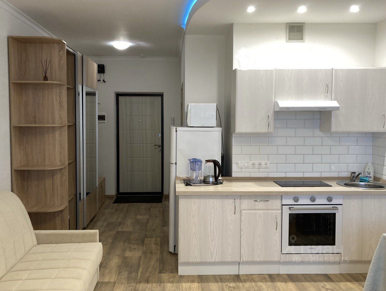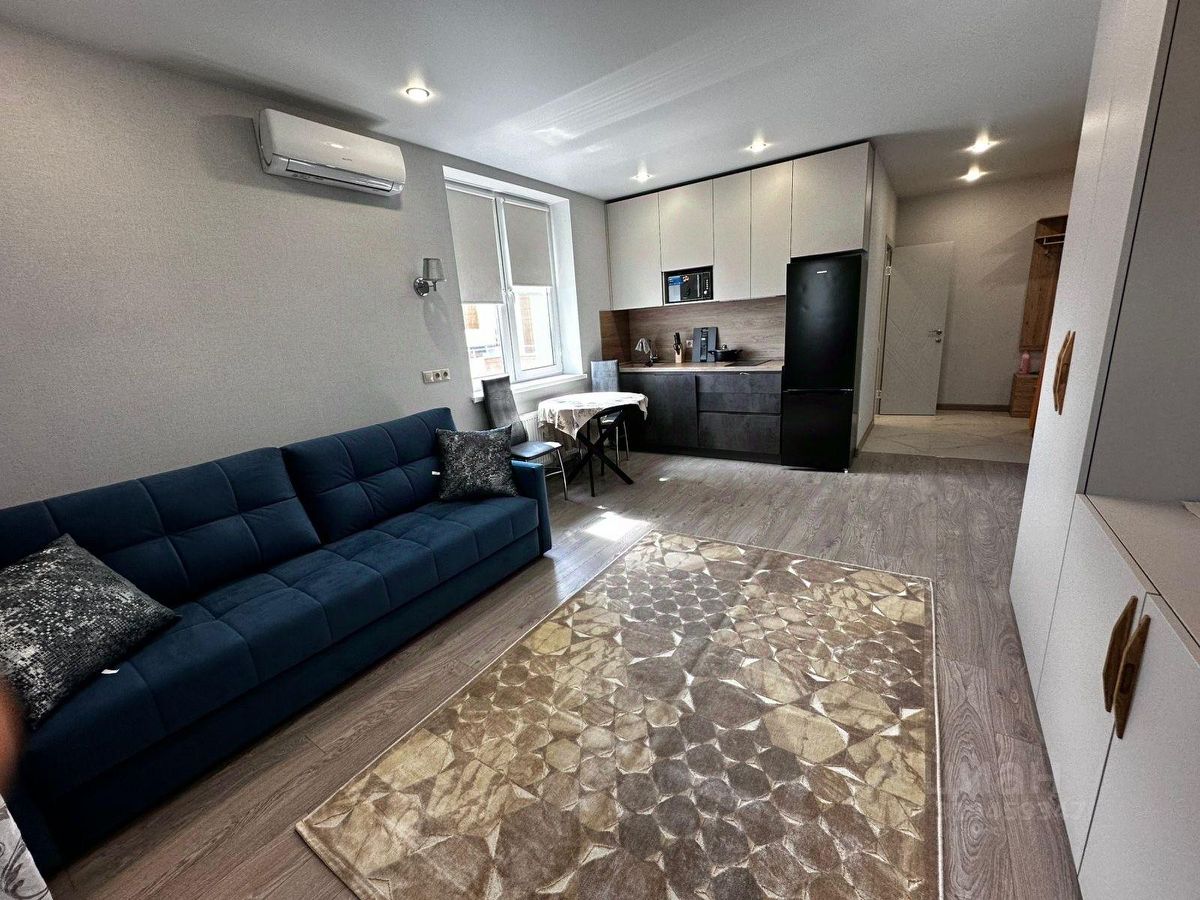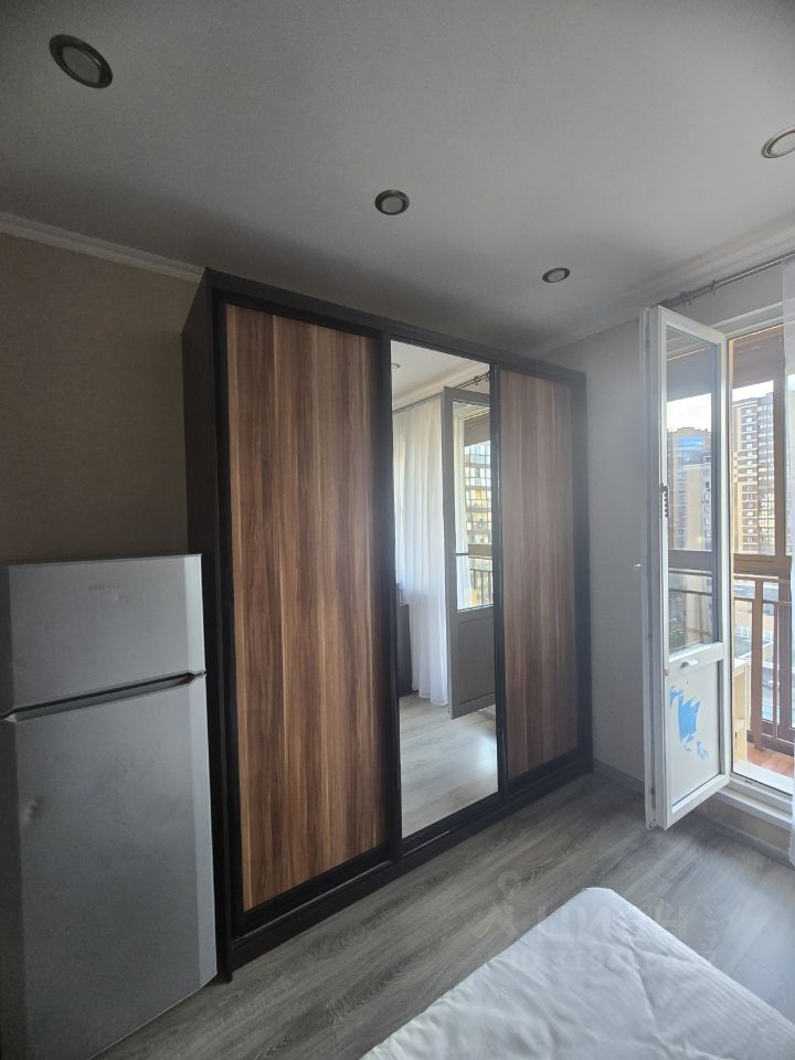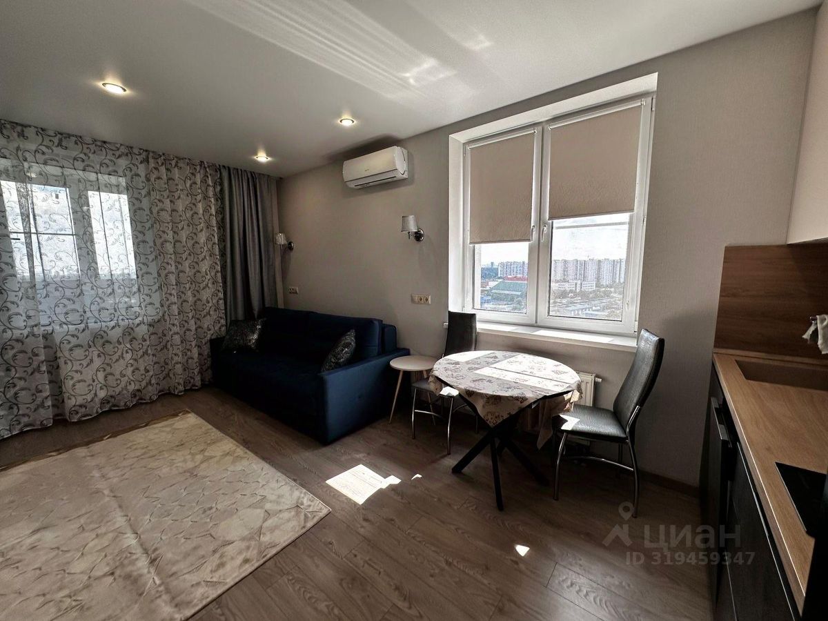 Студия Расположена на 22 этаж 25 этажного дома. Дом монолитный построен в 2022 году. Гостинная кухня: Диван с блоком независимых пружин, для комфортного сна, Кухонный гарнитур, вытяжка, варочная панель, Обеденный стол два стула, Телевизор, Холодильник. Прихожая: 4-х створчатый шкаф, прихожая, зеркало, полка, Санузел совмещенный в плитке: ванна, раковина, стиральная машина автомат. Интернет проведен и подключен. Кондиционер. Сдается на длительный срок. Ключи на руках: покажу в любое время