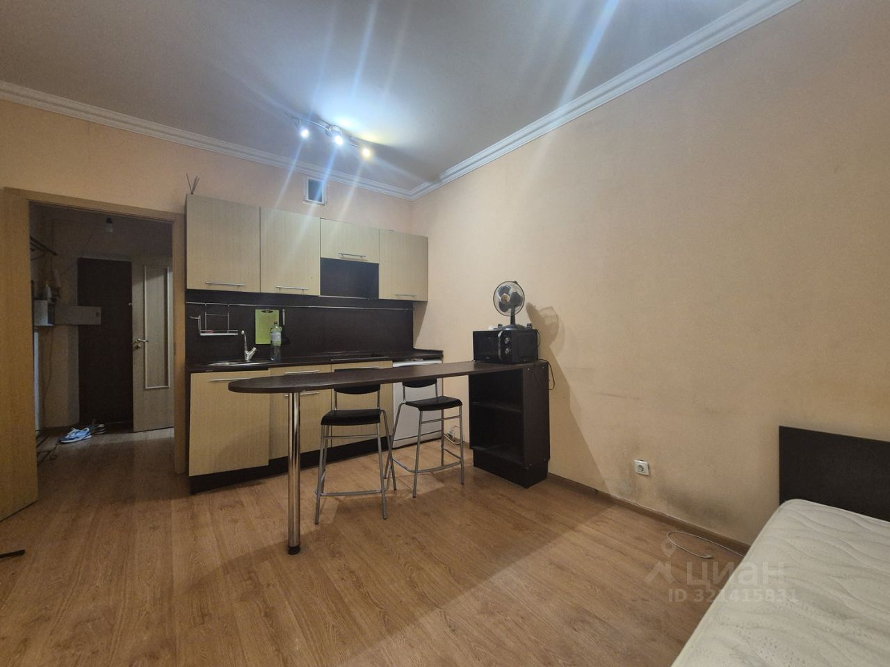 Сдается чистая квартира с косметическим ремонтом (обои под покраску если есть желание можно перекрасить за счёт собственника). Есть все необходимое для комфортного проживания. Из мебели есть двуспальная кровать, шкаф, тумба с телевизором. На кухне установлен кухонный гарнитур. Из техники есть небольшой холодильник, микроволновая печь, переносной кондиционер, плита, стиральная машина. Санузел совместный в кафеле до потолка. Металлическая дверь. Домофон. Прям рядом с домом большой ТЦ.