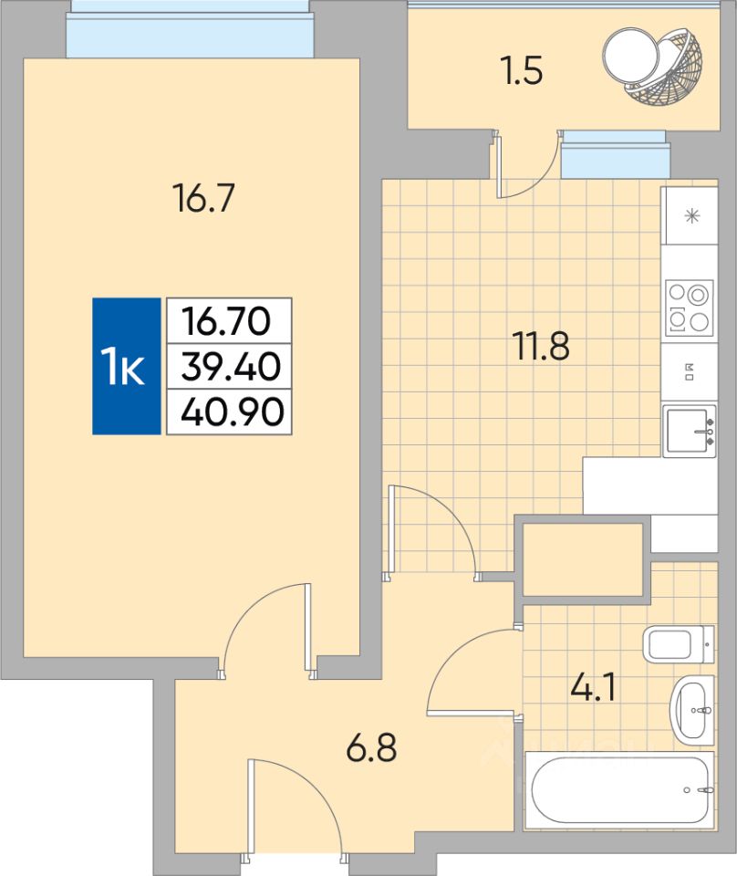 Общая площадь40,9 м2