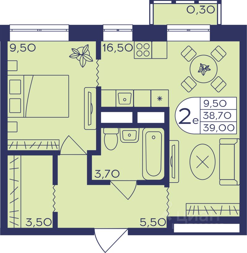 Общая площадь39,2 м2