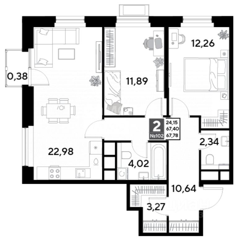 Общая площадь67,4 м2