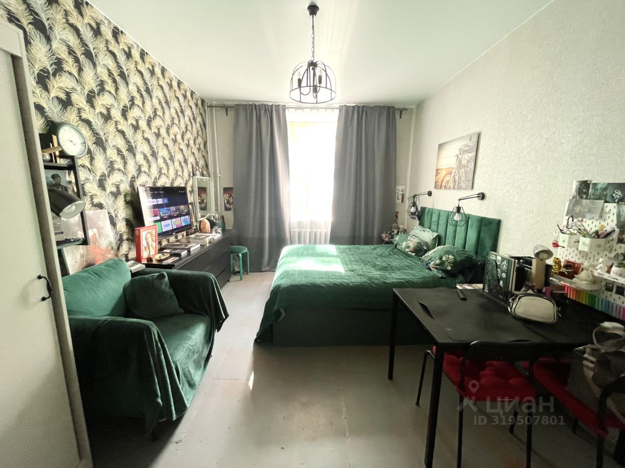 В комнате выполнен качественный ремонт: