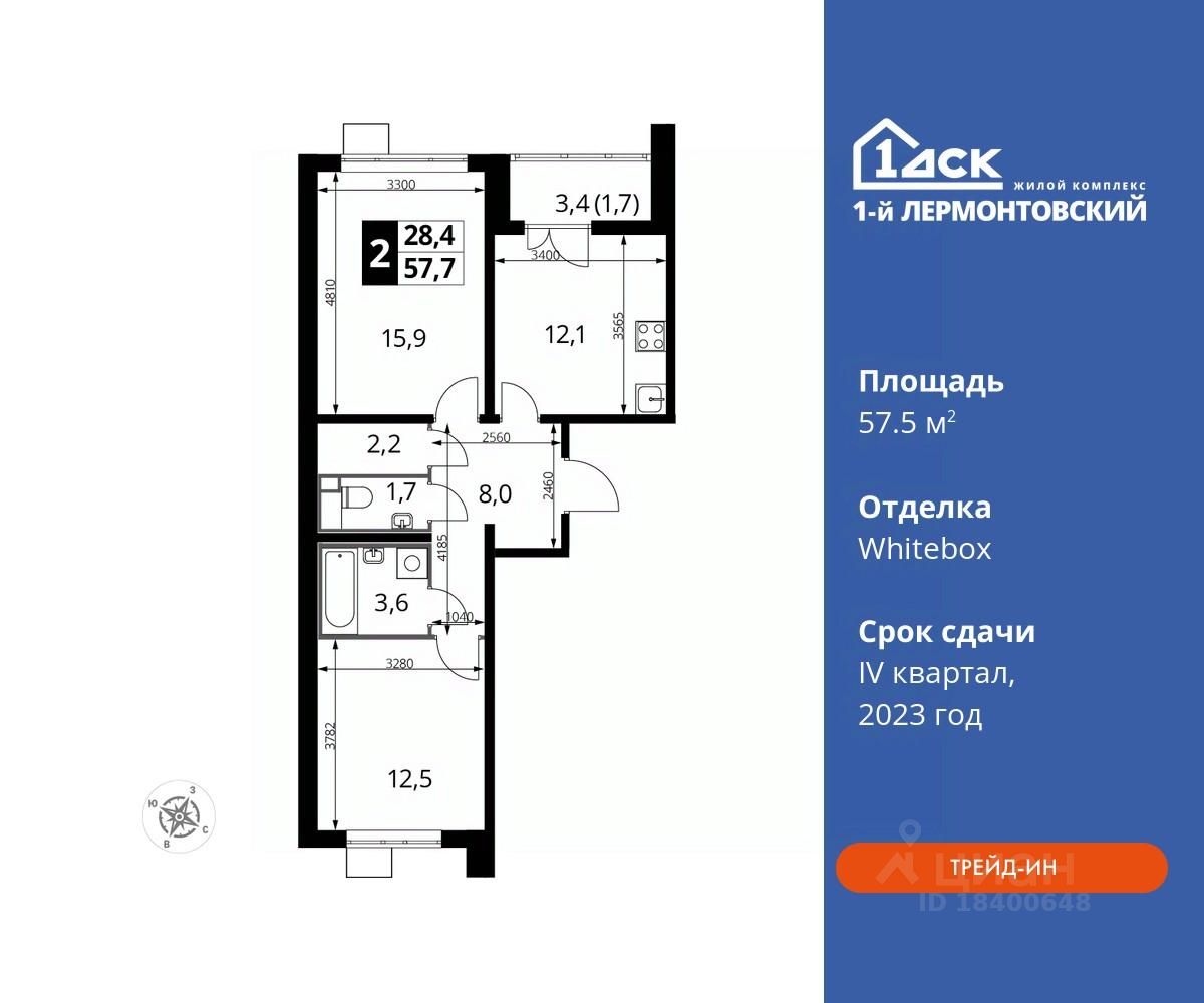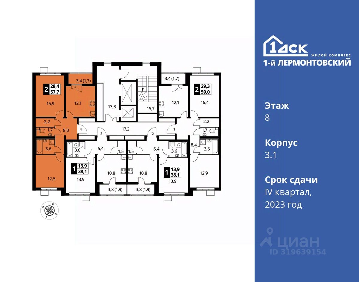 Максимальные скидки при 100% оплате. Корпус сдан! Прямая продажа от застройщика! Жилой Комплекс класса Комфорт плюс. Продаётся 2-к квартира номер 327 в сданном корпусе общей площадью 57.5 кв.м на 8-м этаже 22 этажного дома.
