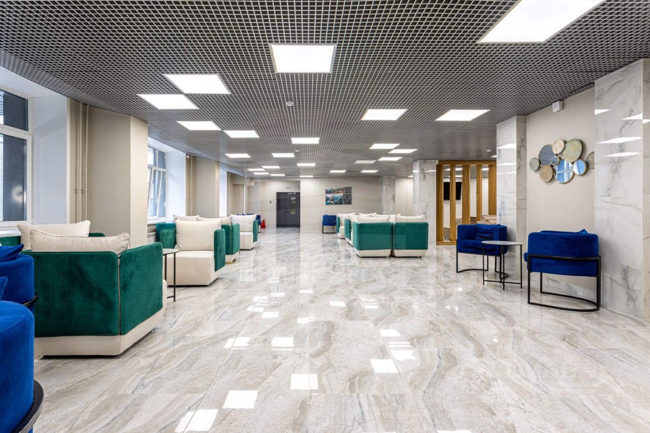 При входе резиденты и их гости попадают в стильное лобби с ресепшеном, а также лаундж-зону. Стильный интерьер в светлых тонах создает домашнюю уютную атмосферу и в то же время подчеркивает статус комплекса.