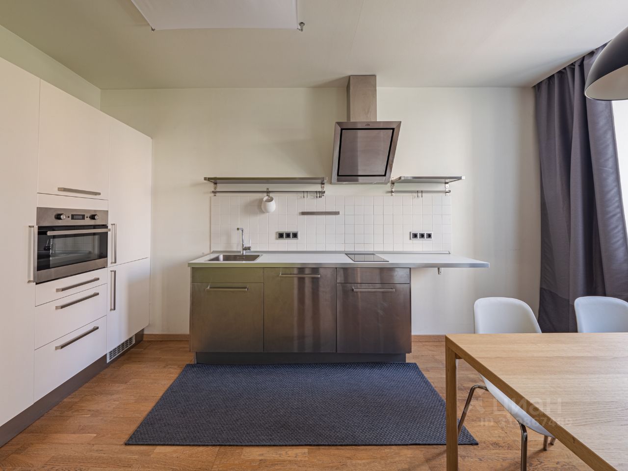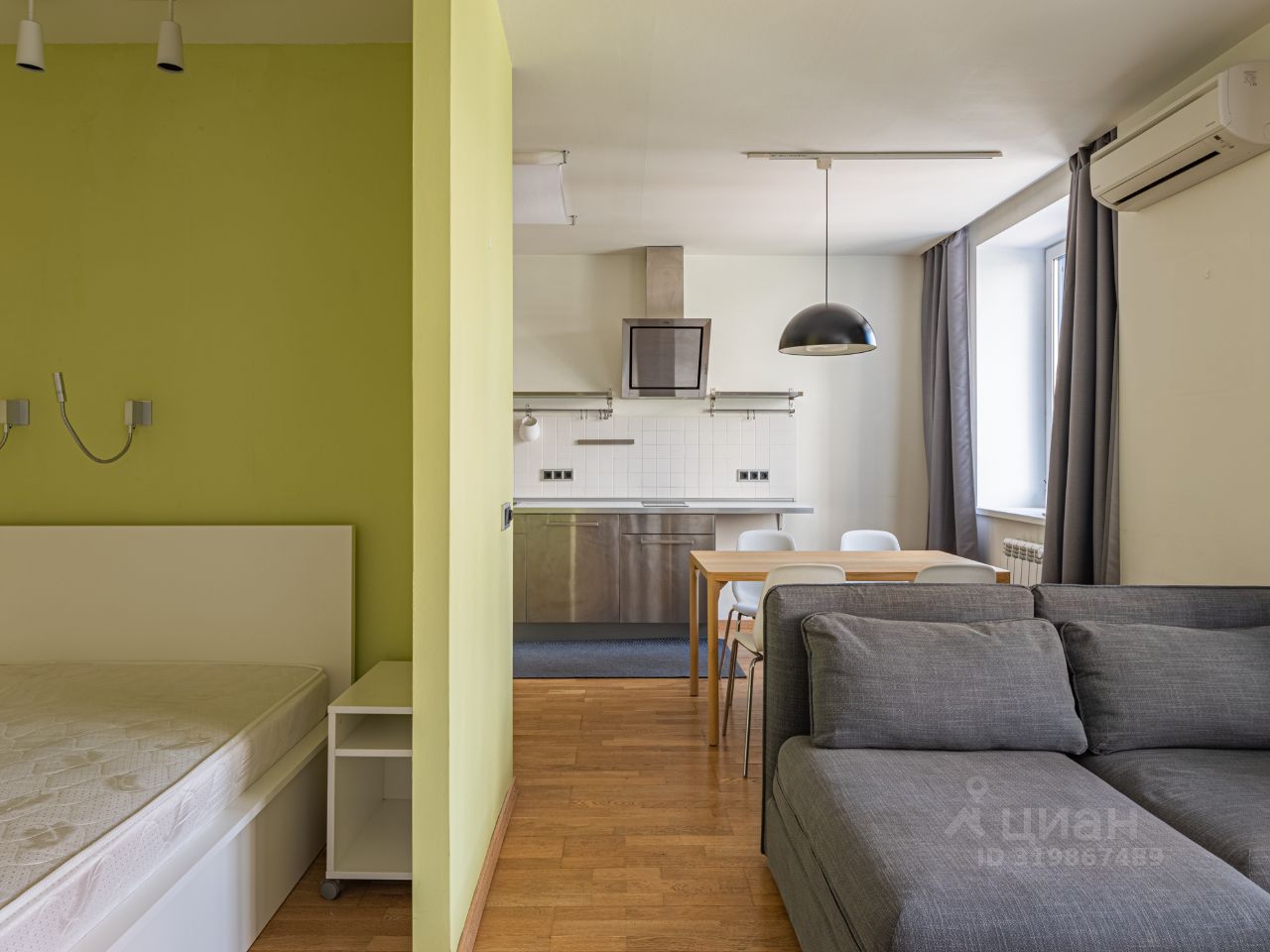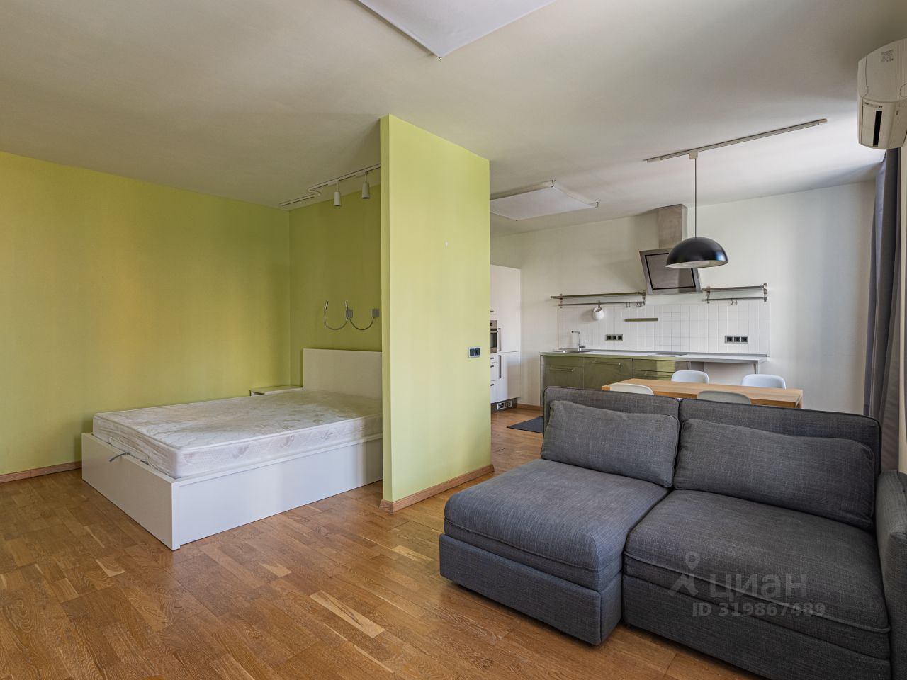 Квартира: просторная и функциональная, студийного плана. Жилая зона, кухонная зона, совмещенный санузел, постирочная, прихожая. На полу натуральное дерево, высота потолка 2,7м., много света. Вся необходимая бытовая техника для комфорта.