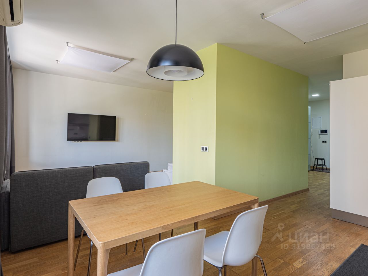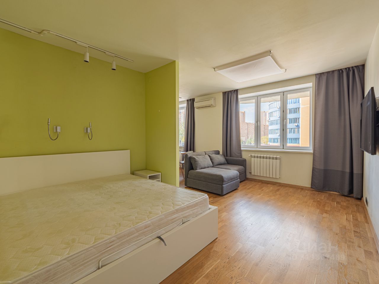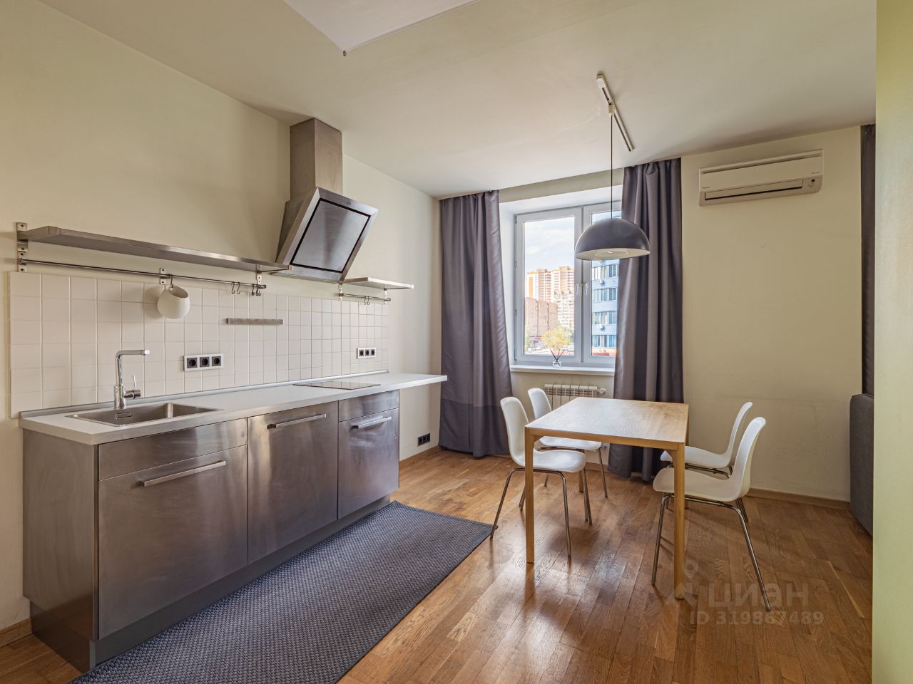 Квартира: просторная и функциональная, студийного плана. Жилая зона, кухонная зона, совмещенный санузел, постирочная, прихожая. На полу натуральное дерево, высота потолка 2,7м., много света. Вся необходимая бытовая техника для комфорта.