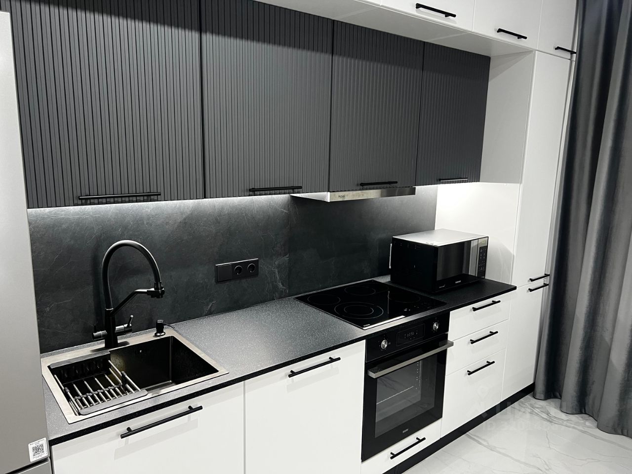 В квартире сделан дизайнерский ремонт создающий уютную атмосферу для жизни в самых современных решениях) Большая кухня площадью 21 кв. м позволит с комфортом собираться всей семьей или принимать гостей.Использованы качественные дорогие стройматериалы, крупноформатный керамагранит, паркетная доска. Все покрытия запилены ровно состыкованы через шов, никаких плинтусов, уголков, карнизов. Очень важно! Никто не жил, вся техника и мебель абсолютно новые, все остаётся для вашей комфортной жизни! Это тот вариант, где заходи и живи!