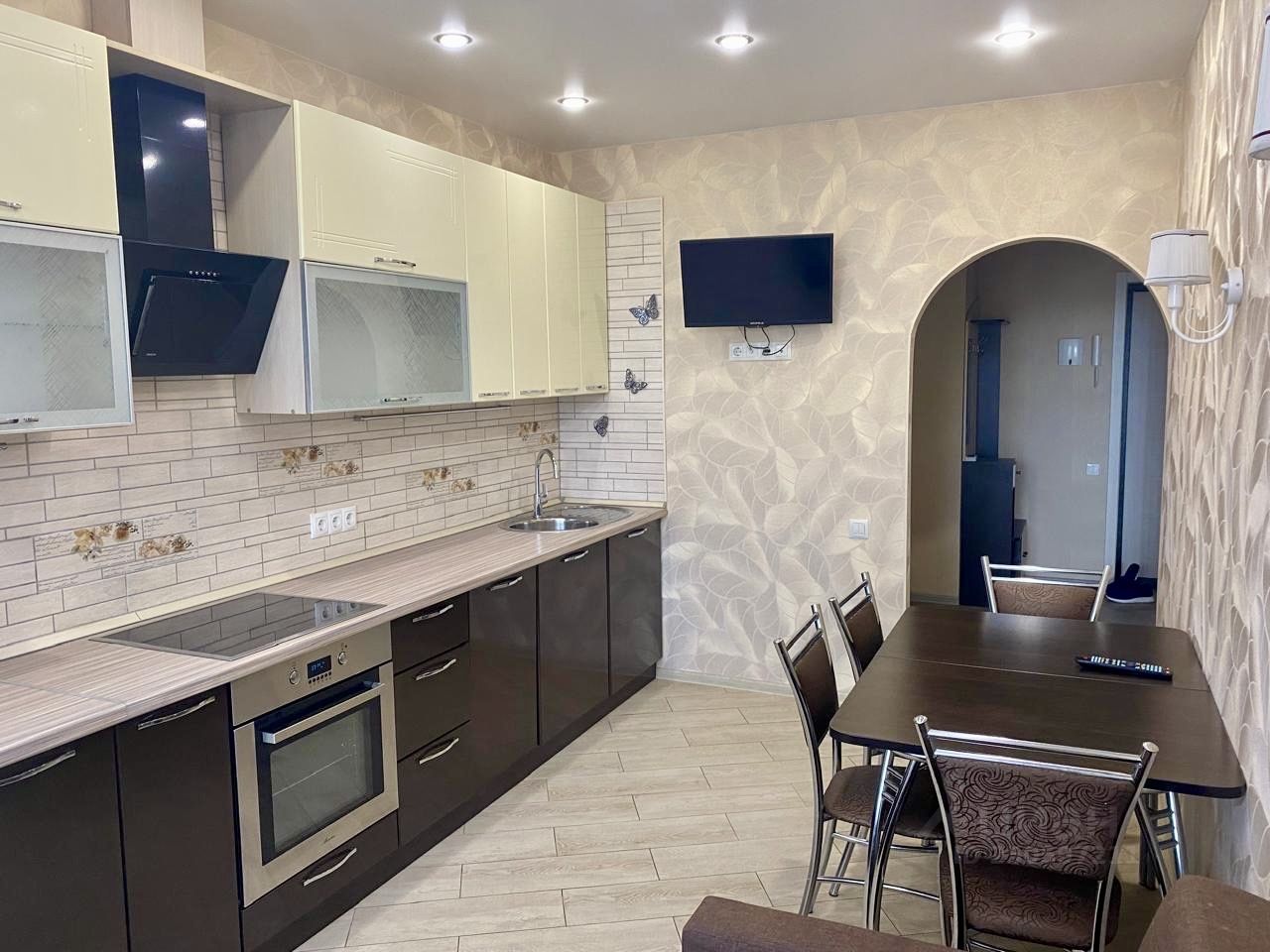 Квартира укомплектована всей необходимой для комфортного проживания новой мебелью и техникой: новая двухспальная кровать, новый матрас, подушки, диван (раскладывается), кресло, комод, вместительные шкафы, два телевизора, встроенная кухня, посудомоечная машина, холодильник, духовой шкаф, варочная панель, вытяжка, микроволновая печь, стиральная машина. робот пылесос. Просторный балкон со шкафом для хранения. Строго без животных! Современные входные группы. Консьерж, видеонаблюдение.