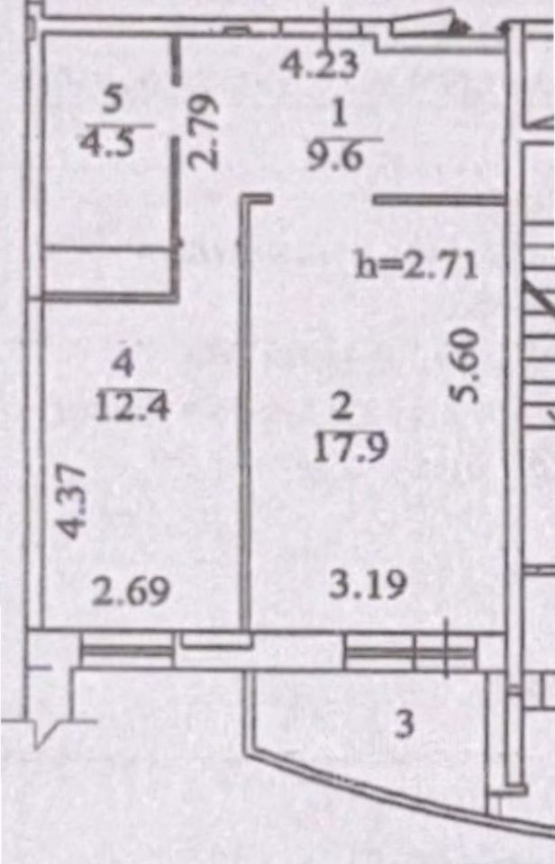 площадь без учета лоджии, по ЕГРН ( + лоджия 5 кв.м., которую можно объединить)