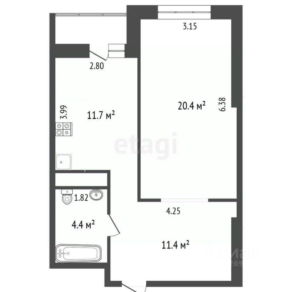Удобная планировка, делает проживание комфортным даже для семьи с детьми: - Кухня площадью 11,7 м² полностью укомплектована техникой и мебелью, позволяет чувствовать себя свободно. - А просторная лоджия, прекрасное место для отдыха и релакса, с видом на огни ночной Москвы. - Уютная комната прямоугольной формы (20,4 м²) с необходимой мебелью и прекрасным видом на город, при грамотном зонировании делит комнату на спальную и гостиную/ рабочую зоны.