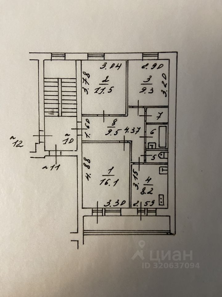Общая площадь квартиры 63,8+ просторная лоджия 3,4 кв.м. Комнаты ( 16,1+11,5-9,3кв.м.)/ кухня 8,2 кв.м./ СУ раздельный. Окна квартиры выходят на две стороны света.