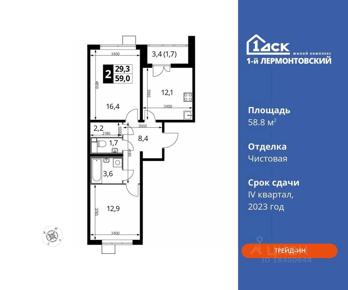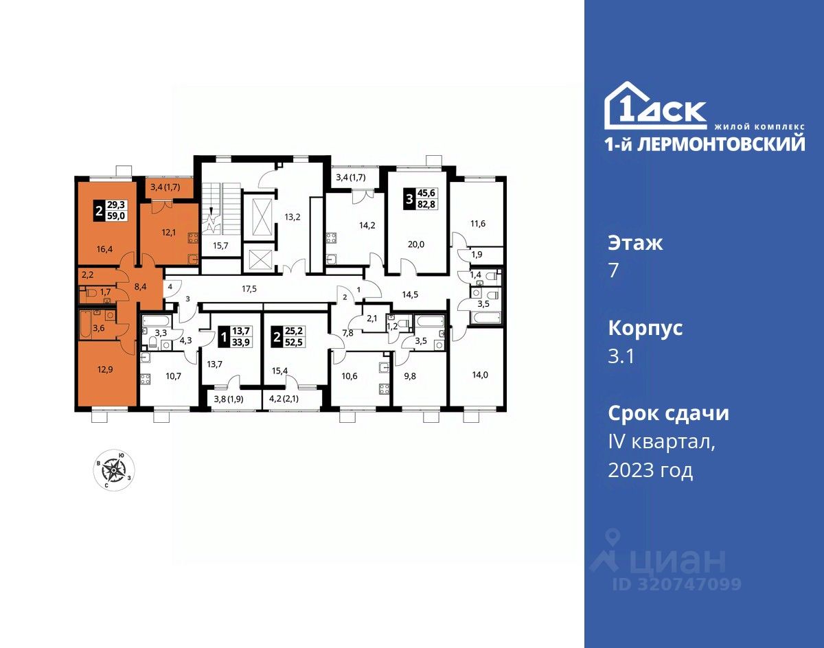 Максимальные скидки при 100% оплате. Корпус сдан! Прямая продажа от застройщика! Жилой Комплекс класса Комфорт плюс. Продаётся 2-к квартира номер 743 в сданном корпусе общей площадью 58.8 кв.м на 7-м этаже 25 этажного дома.