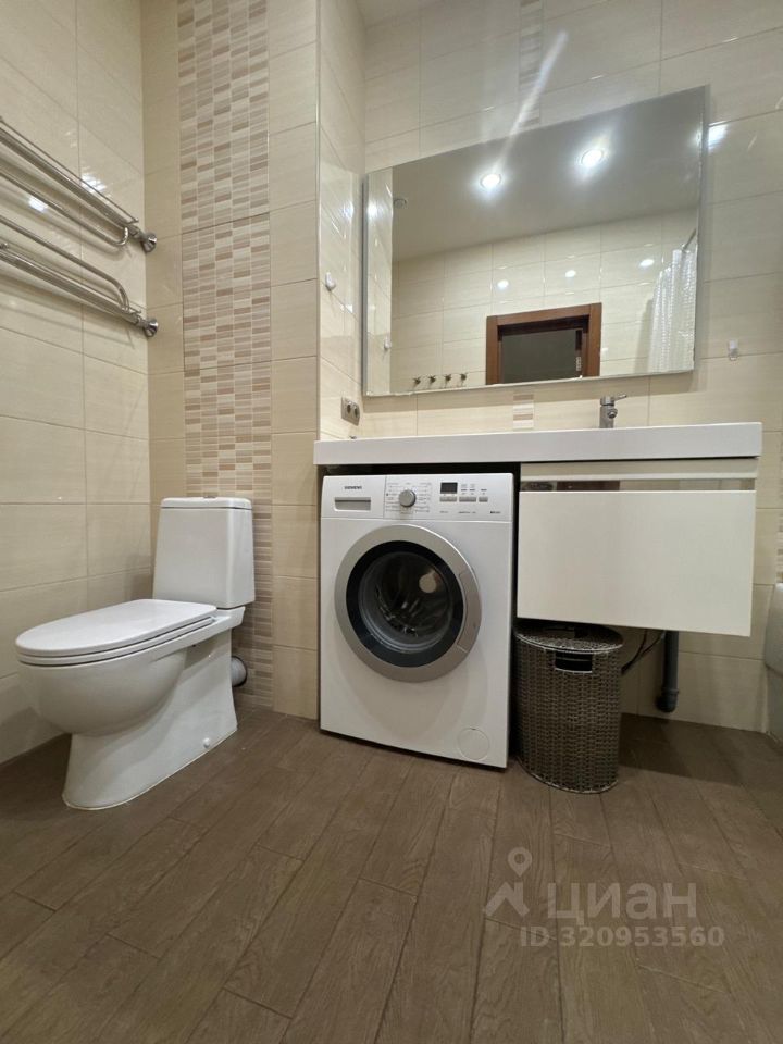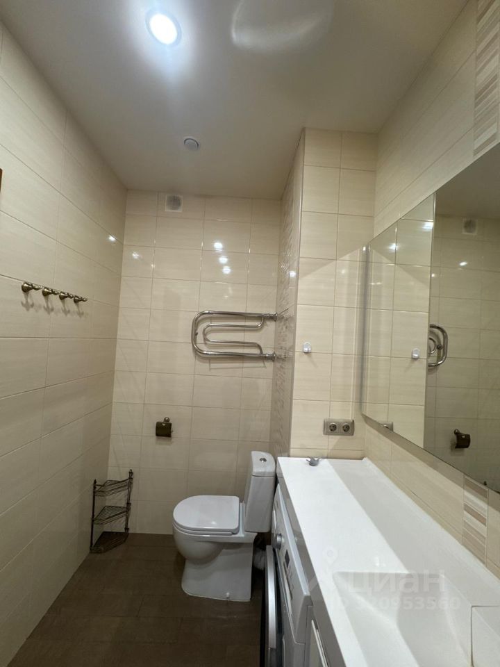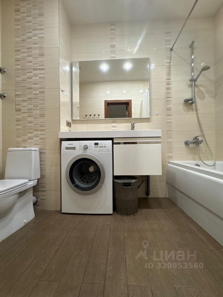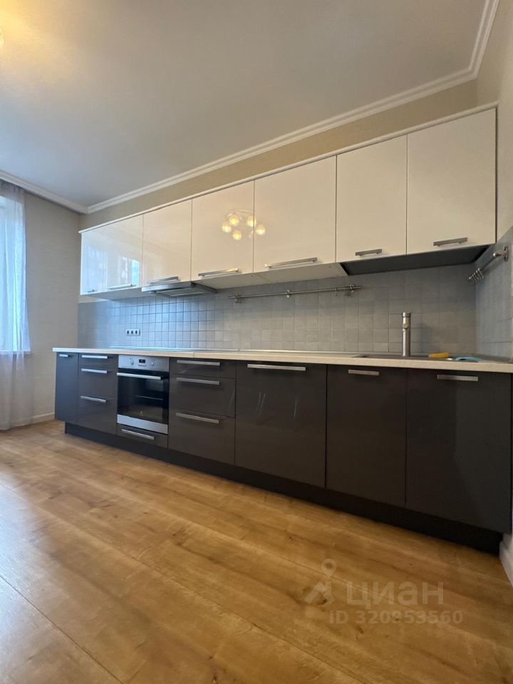 В квартире сделан качественный евроремонт. Просторная жилая площадь составляет 28 кв. м, а кухня — 16 кв. м. В кухне установлена современная мебель и вся необходимая техника, включая посудомоечную и стиральную машины. Санузел совмещённый, а в ванной комнате установлена ванна.Большая гардеробная для хранения. Окна выходят во двор, поэтому в квартире тихо и спокойно. Также есть лоджия, где можно отдохнуть на свежем воздухе.