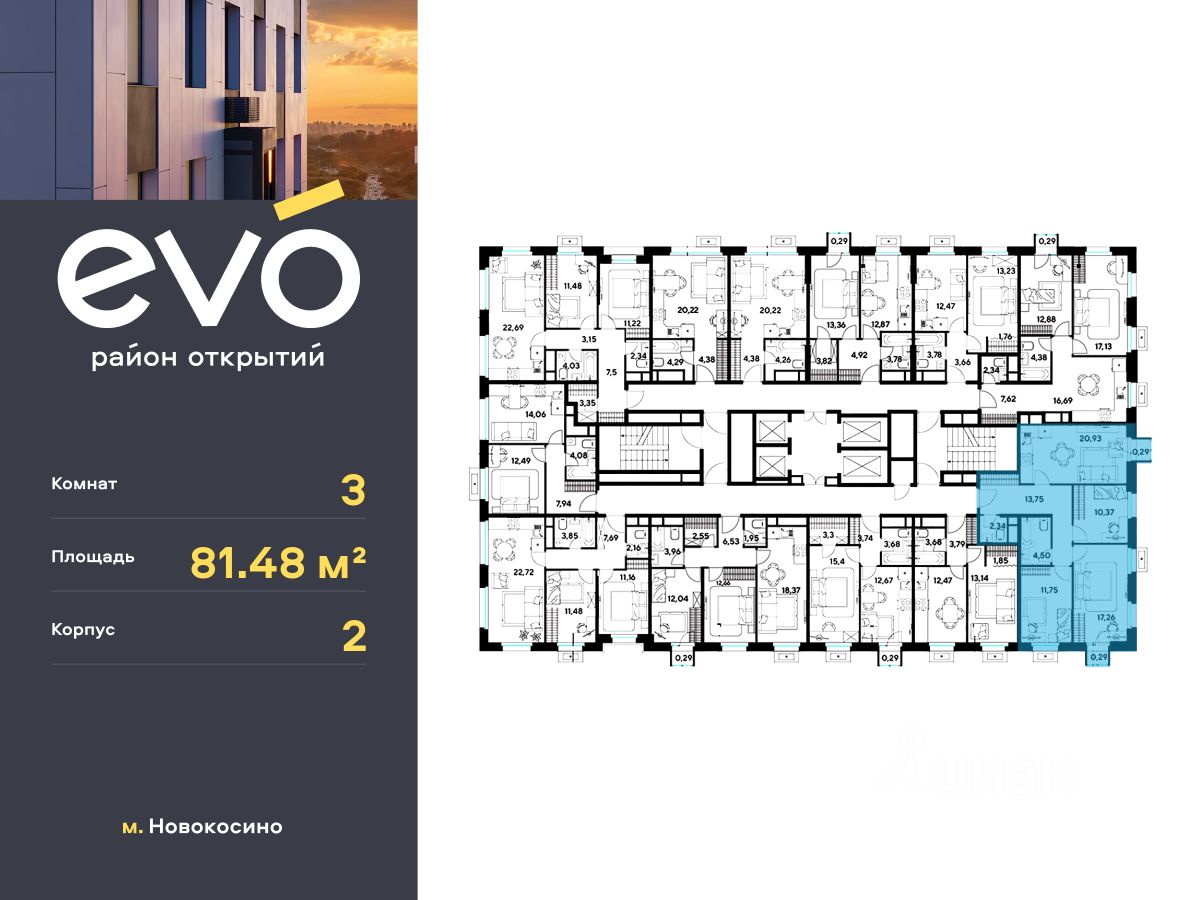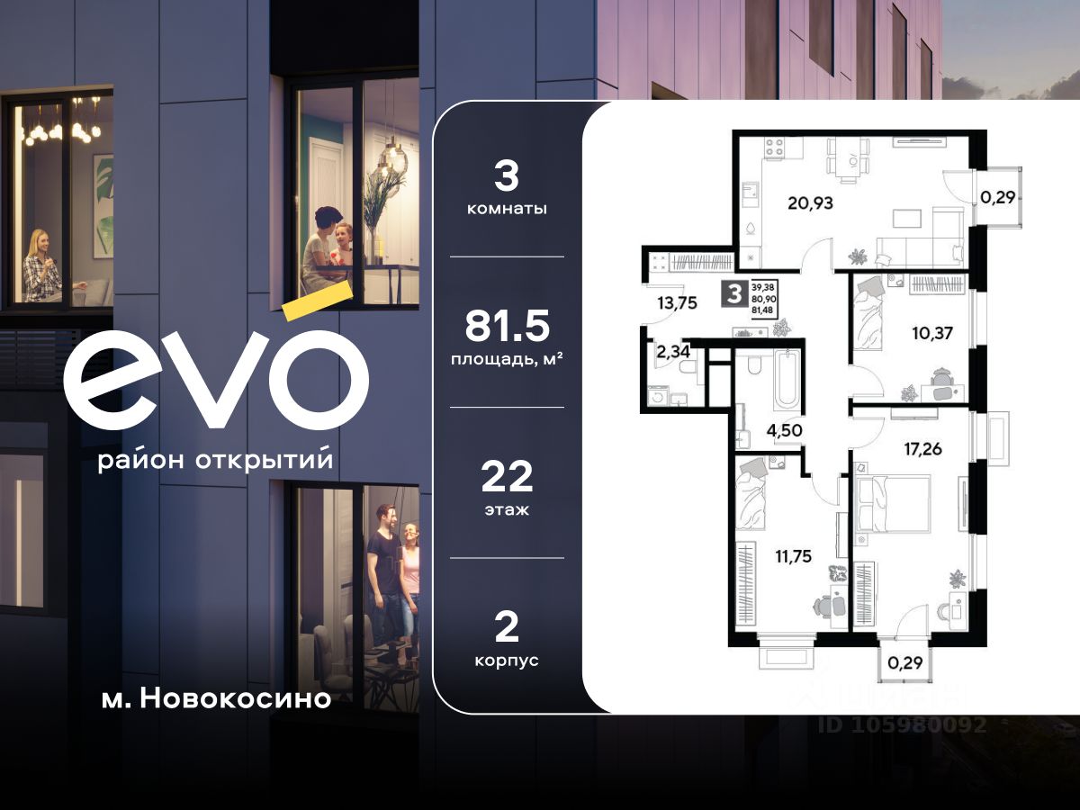Продается трекомнатная квартира 81.48 кв.м. в жилом комплексе EVO на 22 этаже по адресу: Московская область, г. Реутов, ул. Комсомольская. EVO - проект комфорт-класса от девелопера Dogma. Каждый житель сможет открыть для себя максимум возможностей. Совершенствоваться во всех направлениях: физическом, эмоциональном и материальном. В EVO можно открыть для себя новые виды спорта, найти единомышленников по хобби, партнеров по бизнесу, развивать в детях новые грани, наслаждаться природой и лаконичной архитектурой.