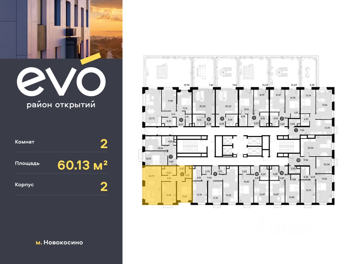 Продается двухкомнатная квартира 60.13 кв.м. в жилом комплексе EVO на 2 этаже по адресу: Московская область, г. Реутов, ул. Комсомольская. EVO - проект комфорт-класса от девелопера Dogma. Каждый житель сможет открыть для себя максимум возможностей. Совершенствоваться во всех направлениях: физическом, эмоциональном и материальном. В EVO можно открыть для себя новые виды спорта, найти единомышленников по хобби, партнеров по бизнесу, развивать в детях новые грани, наслаждаться природой и лаконичной архитектурой.