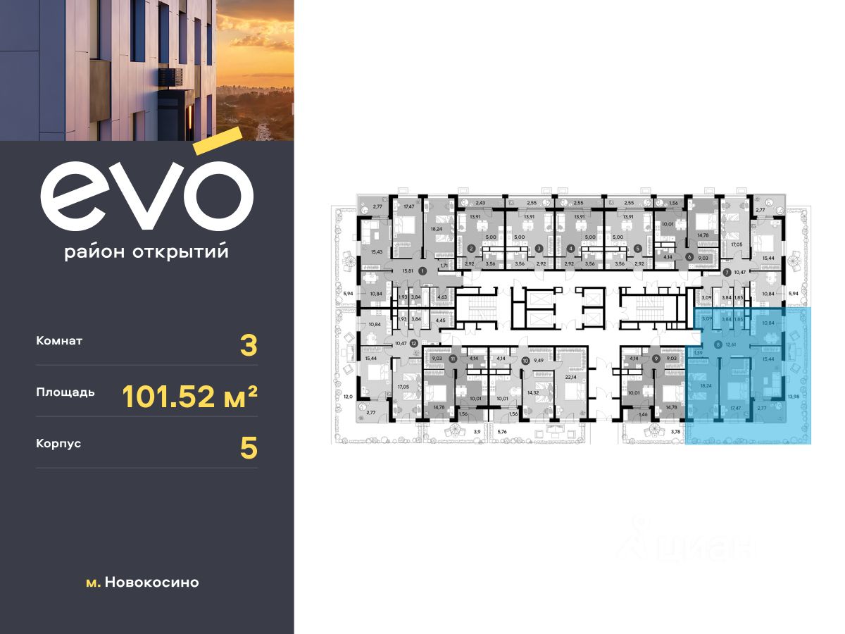 Продается трекомнатная квартира 101.52 кв.м. в жилом комплексе EVO на 2 этаже по адресу: Московская область, г. Реутов, ул. Комсомольская. EVO - проект комфорт-класса от девелопера Dogma. Каждый житель сможет открыть для себя максимум возможностей. Совершенствоваться во всех направлениях: физическом, эмоциональном и материальном. В EVO можно открыть для себя новые виды спорта, найти единомышленников по хобби, партнеров по бизнесу, развивать в детях новые грани, наслаждаться природой и лаконичной архитектурой.