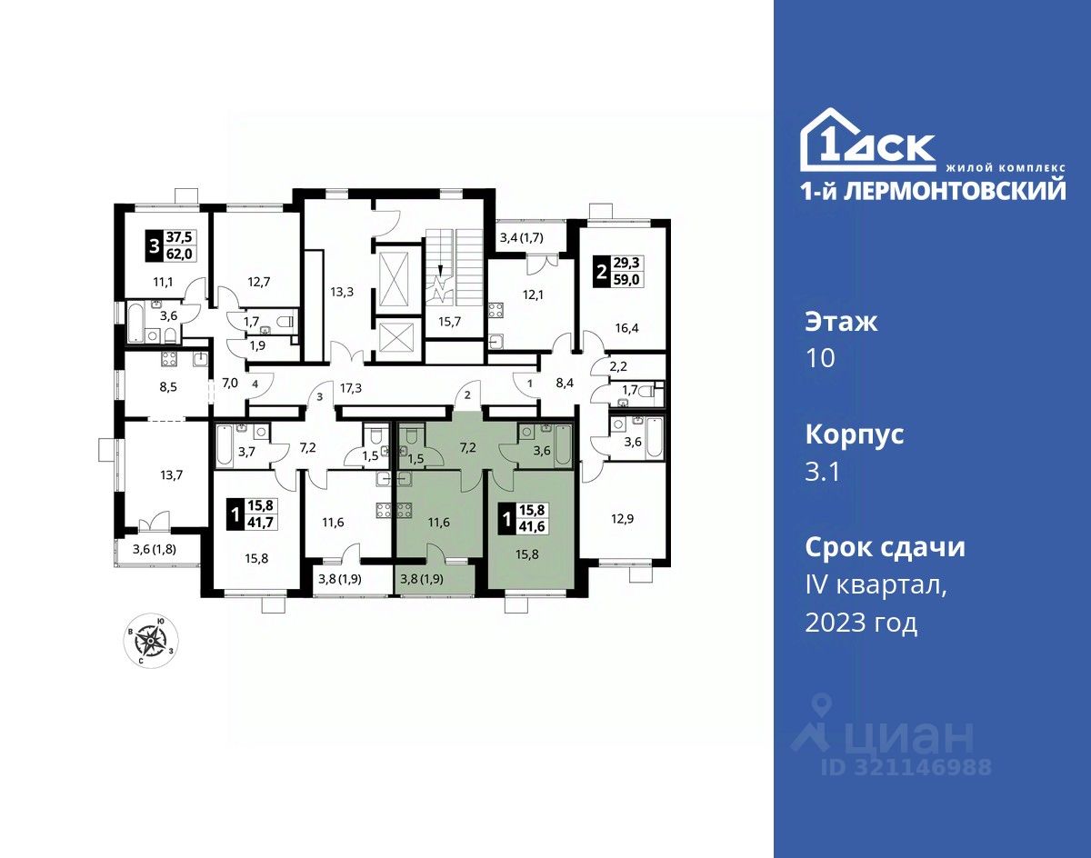 Максимальные скидки при 100% оплате. Корпус сдан! Прямая продажа от застройщика! Жилой Комплекс класса Комфорт плюс. Продаётся 1-к квартира номер 849 в сданном корпусе общей площадью 41.6 кв.м на 10-м этаже 25 этажного дома.
