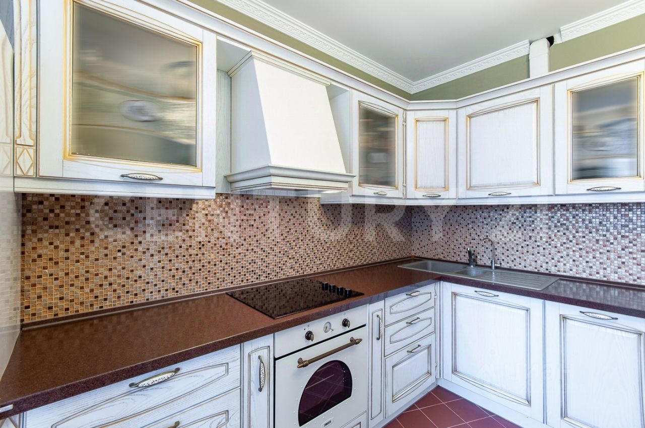 Уютная кухня 15 м2 оборудована бытовой техникой, включая холодильник, посудомоечную машину, вытяжку. Из кухни выход на большую, застекленную лоджию общей площадью 5м2.