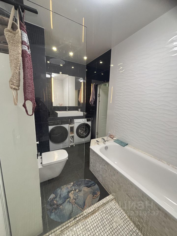 В квартире сделан дизайнерский ремонт, что придаёт ей стильный и современный вид. Комнаты меблированы, на кухне установлена вся необходимая мебель. Для вашего комфорта в квартире есть кондиционер, холодильник, посудомоечная и стиральная машины, а также телевизор. В ванной комнате вас ждут как ванна, так и душевая кабина. Имеется одна лоджия , с рабочим местом .