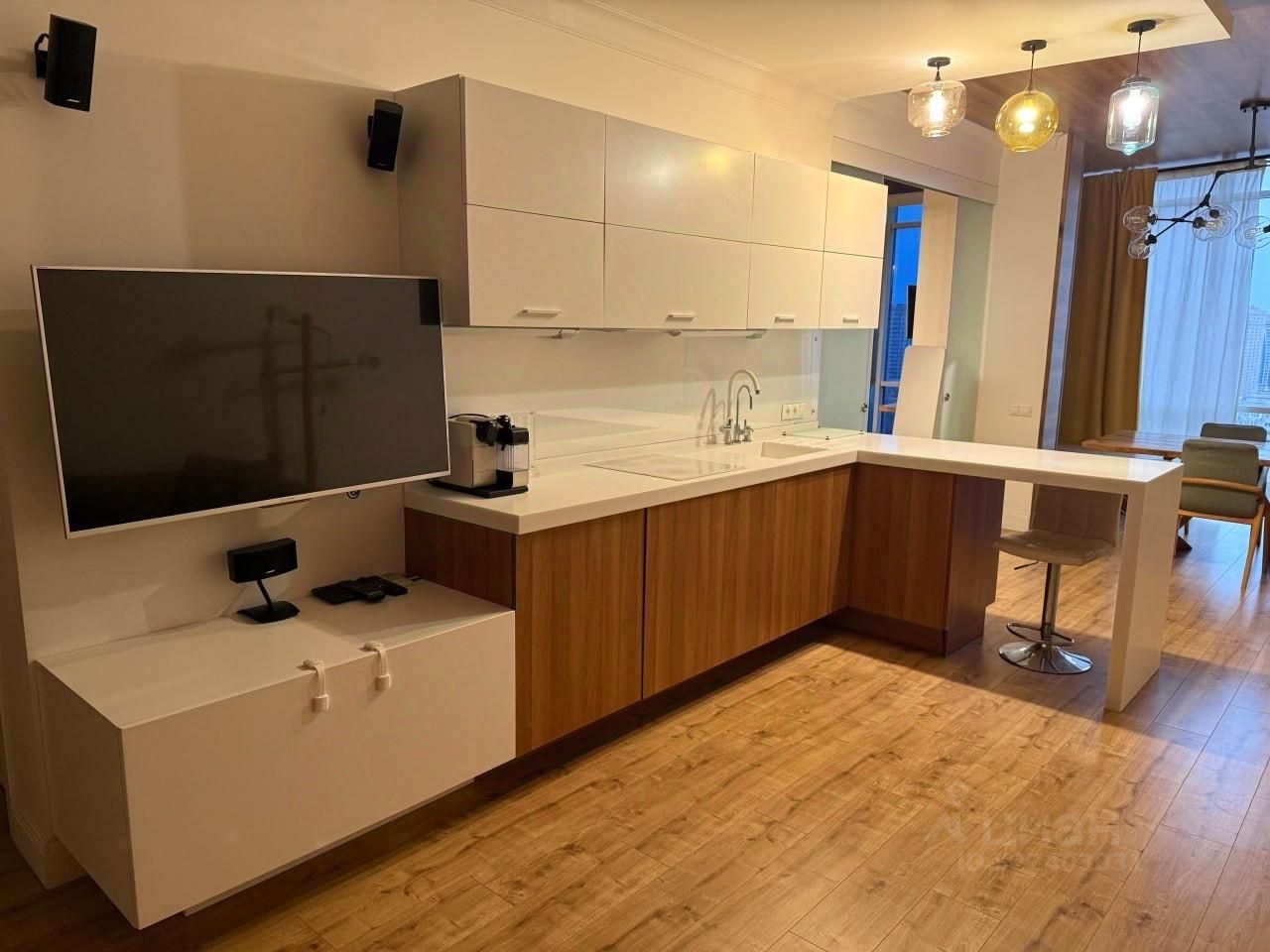Квартира продаться с хорошим ремонтом, остаётся почти вся мебель и техника. Большая кухня-гостиная, изолированная спальня с панорамным остеклением, два санузла, две гардеробные комната. Есть все необходимое для комфортного проживания.