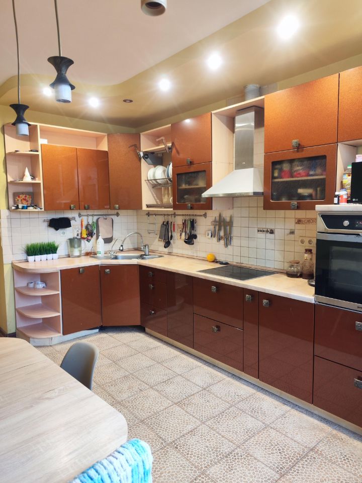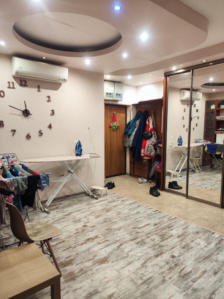 В квартире выполнен евроремонт в 2012 году. Просторная кухня-столовая площадью 17 квадратных метров. Две изолированные комнаты 20 и 25 кв.м. Два отдельных санузла. Балкон из комнаты, застеклен. Есть кладовая. Стеклопакеты.Кондиционеры. На полу ламинат, плитка в с/узлах, прихожей,частично на кухне. В одной из комнат натуральная пробка. Квартира очень теплая. При желании квартиру можно переоборудовать в 3хкомнатную. В квартире остаётся встроенная кухня, два шкафа-купе (в комнате и коридоре).
