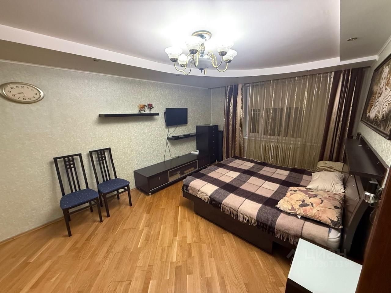 Квартира оборудованная всей необходимой мебелью и бытовой техникой. Одна комната оборудована под рабочий кабинет, но можно использовать как жилую комнату.