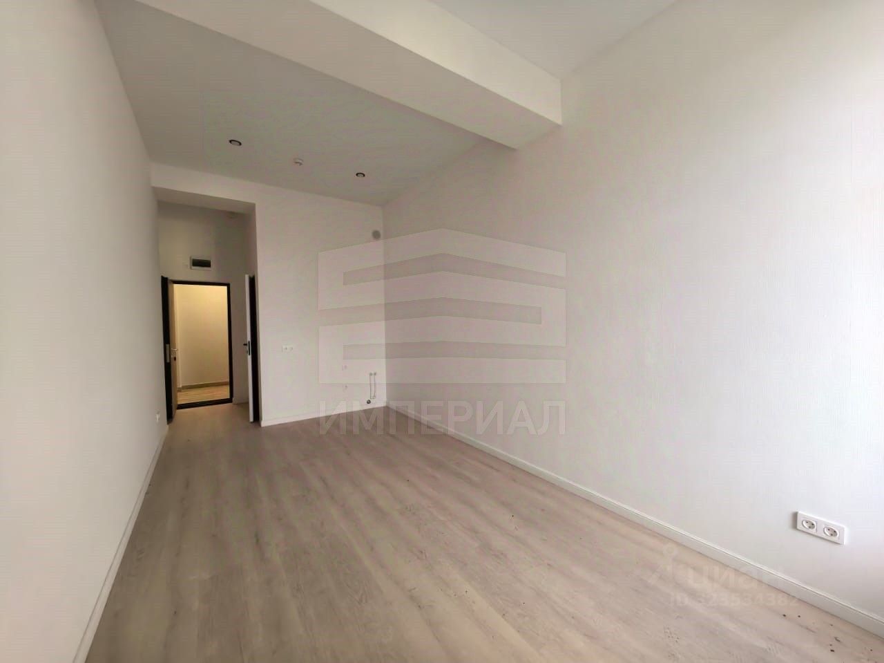 На стенах поклеены обои под покраску, на полу постелен ламинат с плинтусами и откосами. Есть вытяжная вентиляция в санузле и на кухне, выходы хв/гв, место под раковину на кухне. Кроме того, в помещениях уже есть выключатели освещения, розетки для бытовой техники и роутера, а также сделаны закладные для оптоволокна для интернета.