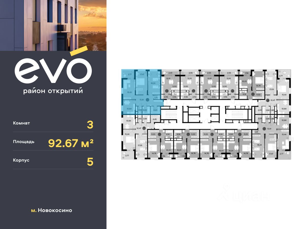 Продается трекомнатная квартира 92.67 кв.м. в жилом комплексе ЭВО на 16 этаже по адресу: Московская область, г. Реутов, ул. Комсомольская. Скидка 15% на выделенный пул двухкомнатных и трёхкомнатных квартир с готовностью в 2026 году!* ЭВО - проект комфорт-класса от девелопера Dogma. Каждый житель сможет открыть для себя максимум возможностей. Совершенствоваться во всех направлениях: физическом, эмоциональном и материальном. В ЭВО можно открыть для себя новые виды спорта, найти единомышленников по хобби, партнеров по бизнесу, развивать в детях новые грани, наслаждаться природой и лаконичной архитектурой.