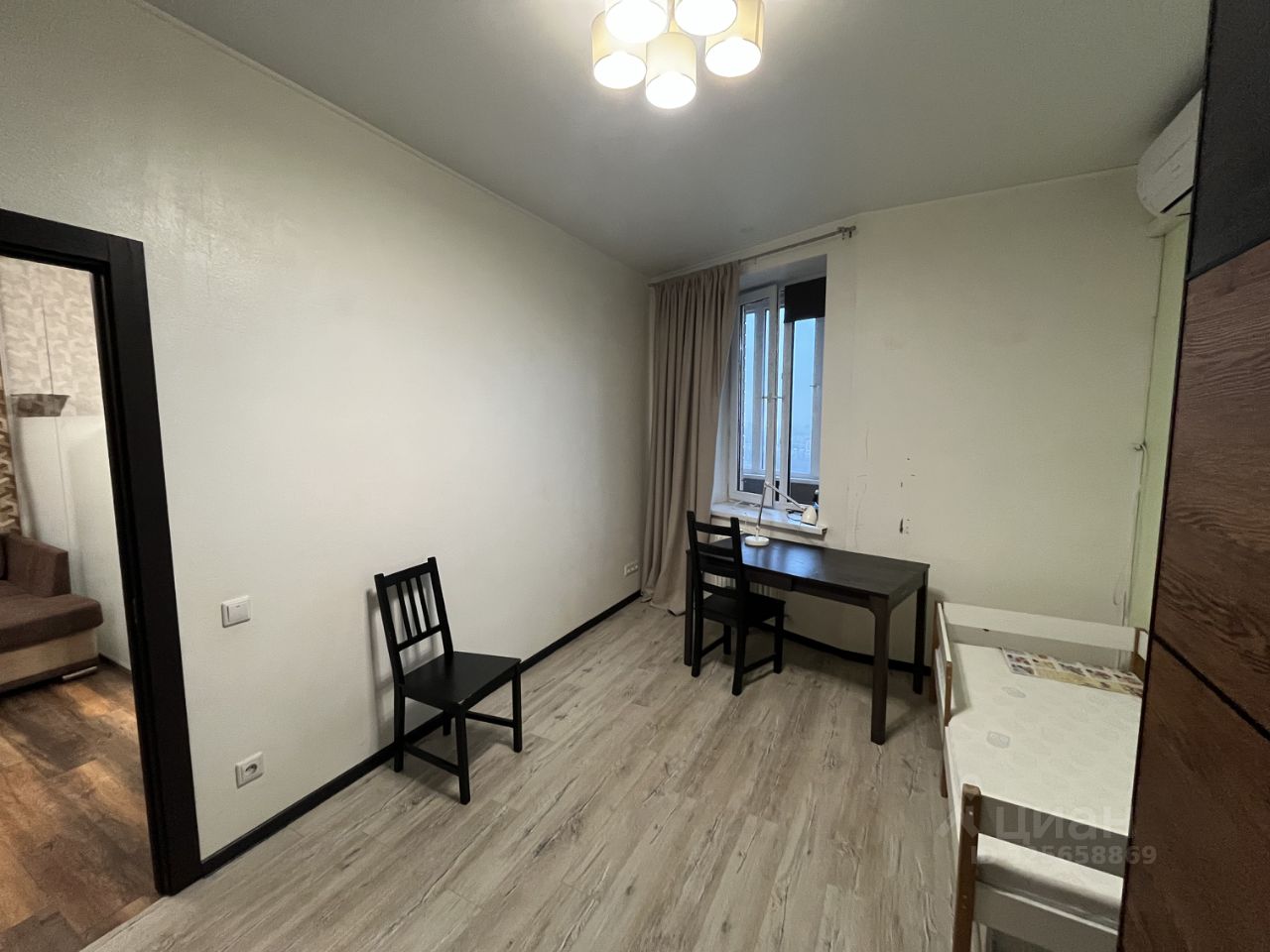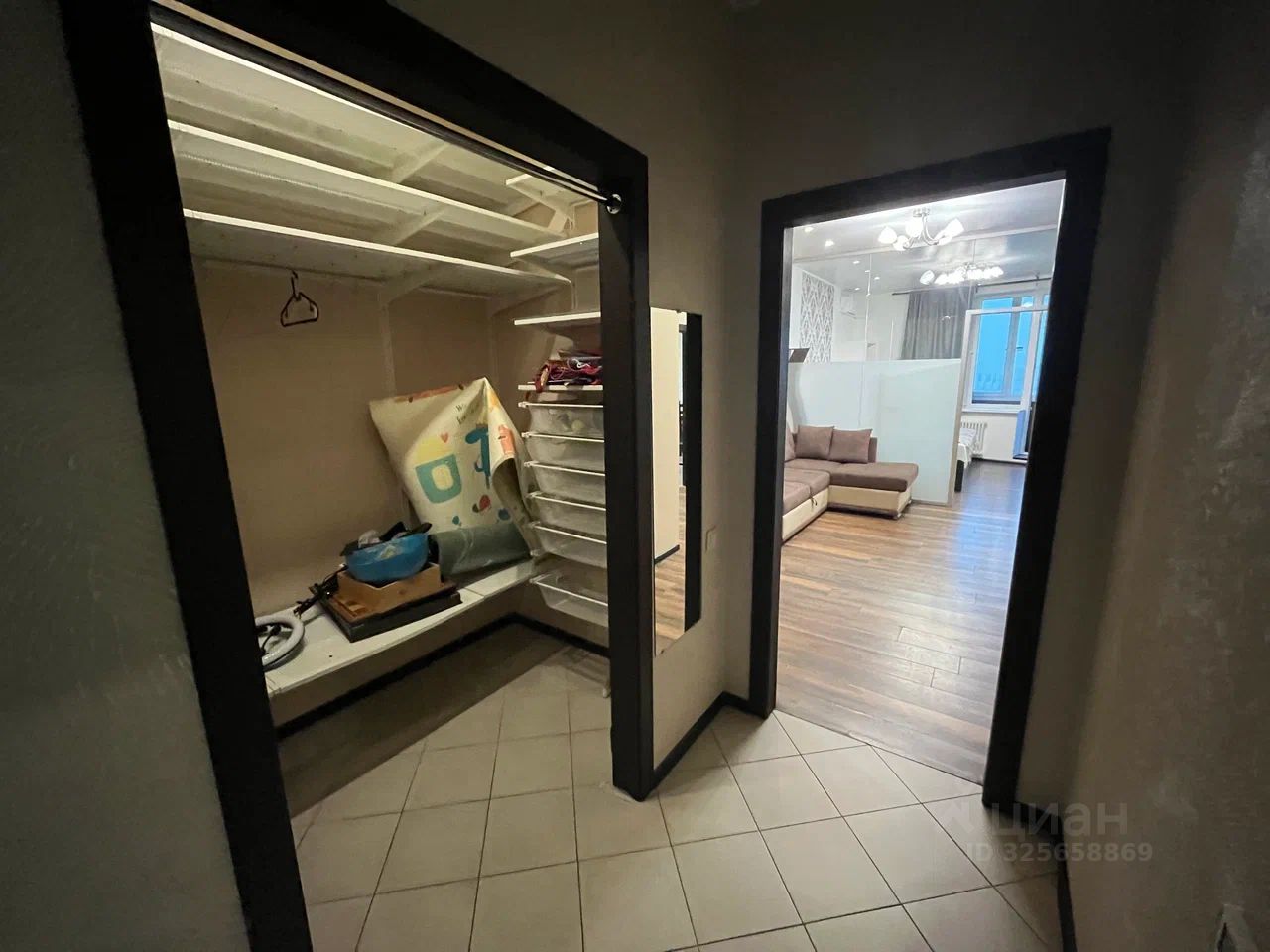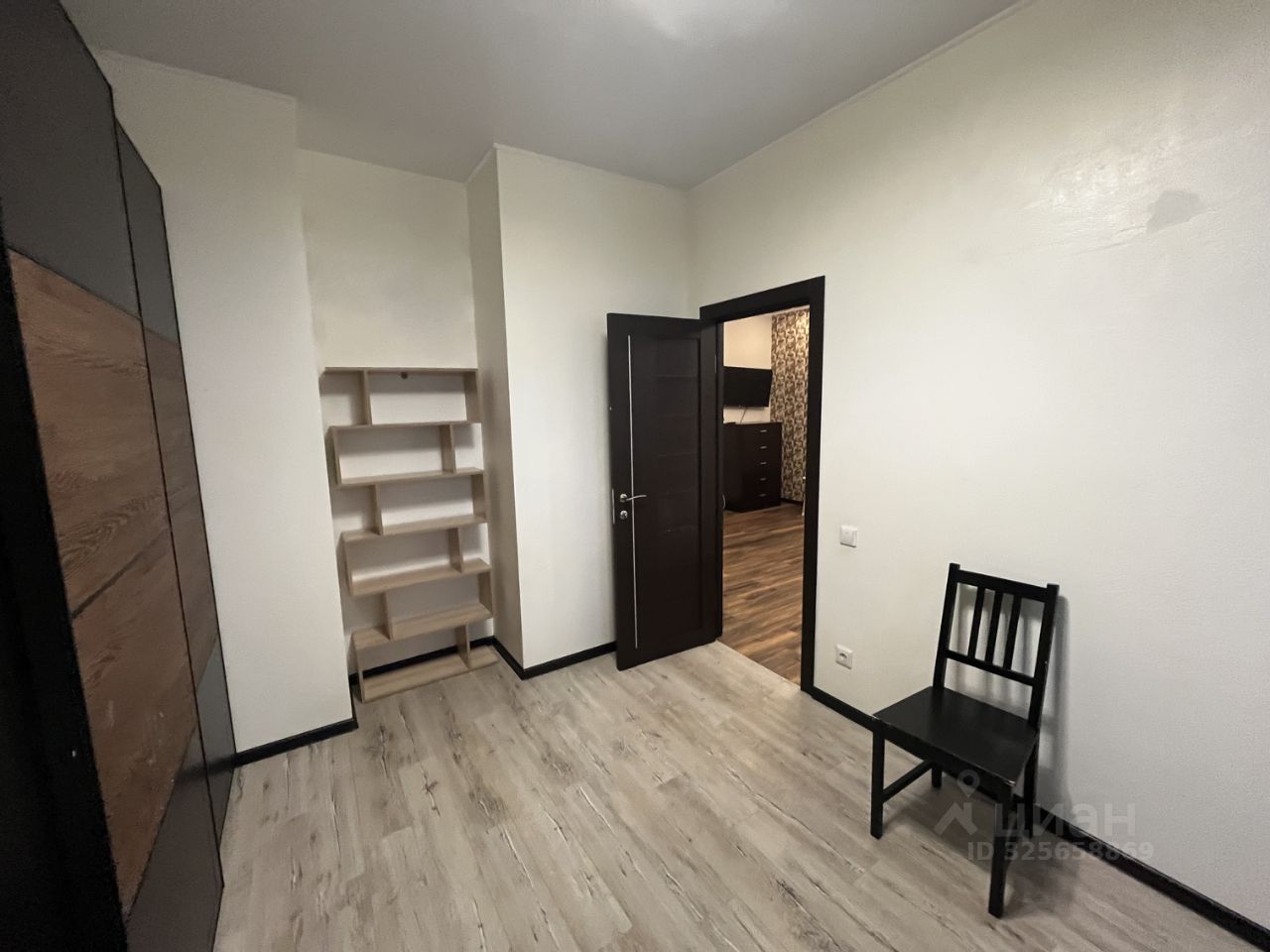 Планировка квартиры - кухня-гостиная из которой выход в спальню и в детскую комнату, совмещенный сан.узел с ванной, в прихожей при входе есть гардеробная, в квартире два окна.