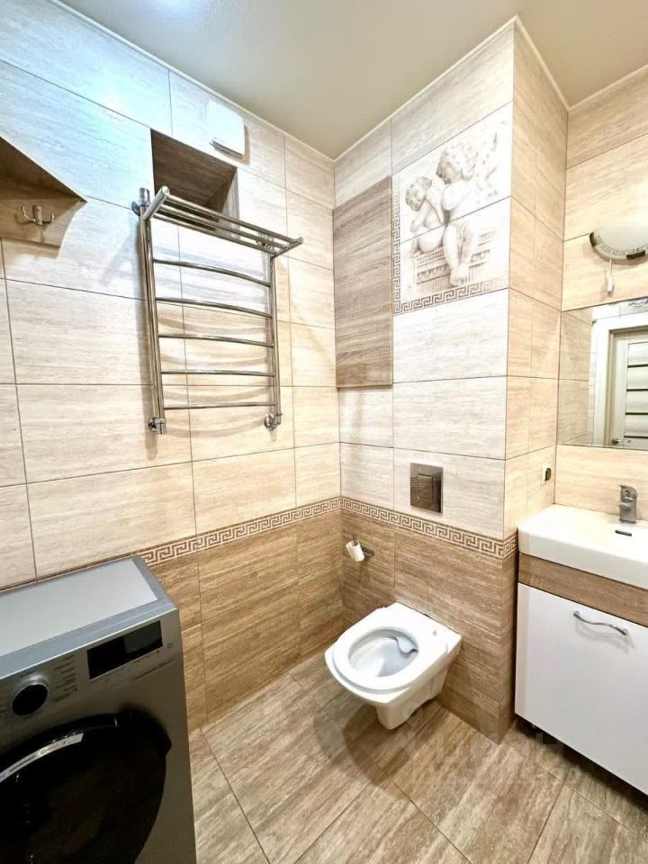 Просторная двухкомнатная квартира площадью 45 кв. м расположена на 16 этаже современного монолитного 25-этажного дома 2015 года постройки. Высота потолков 2,7 метра и панорамные виды из окон создают ощущение простора и наполняют пространство естественным светом. В квартире выполнен качественный евроремонт. Частично мебель и техника остаются новому владельцу, включая современную кухонную технику. Планировка с изолированными комнатами и санузлом обеспечивает комфортное проживание. Дом оснащен надежной лифтовой системой, включающей один пассажирский и два грузовых лифта, а также мусоропроводом на этаже. Прилегающая территория благоустроена, оборудована наземной парковкой и пандусом.