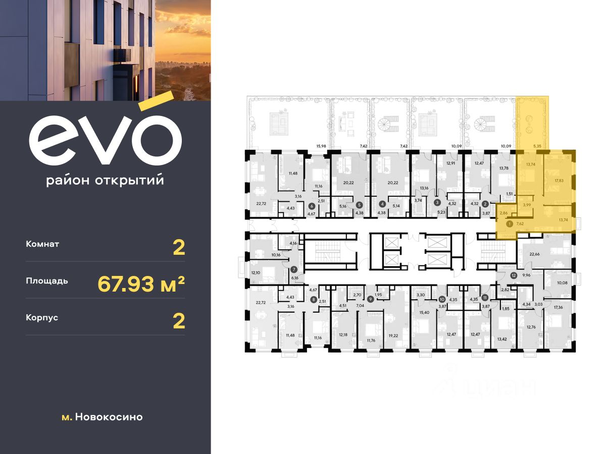 Продается двухкомнатная квартира 67.93 кв.м. в жилом комплексе ЭВО на 2 этаже по адресу: Московская область, г. Реутов, ул. Комсомольская. Скидка 15% на выделенный пул двухкомнатных и трёхкомнатных квартир с готовностью в 2026 году!* ЭВО - проект комфорт-класса от девелопера Dogma. Каждый житель сможет открыть для себя максимум возможностей. Совершенствоваться во всех направлениях: физическом, эмоциональном и материальном. В ЭВО можно открыть для себя новые виды спорта, найти единомышленников по хобби, партнеров по бизнесу, развивать в детях новые грани, наслаждаться природой и лаконичной архитектурой.