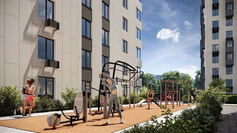 - Зеленый двор без машин, кленовая аллея для прогулок. - Нейродинамические площадки для детей разных возрастов. - Зона уличных тренажеров, столы для пинг-понга, места для занятия йогой. велодорожки и дорожки для скандинавской ходьбы. - Детский сад на 180 мест и школа на 750 мест. - Зона книгообмена - Лобби с зоной ожидания, колясочной и лапомойкой. - Магазины и кафе на первых этажах.