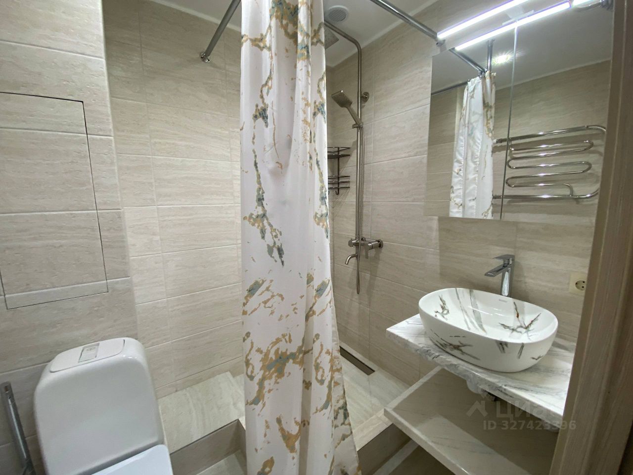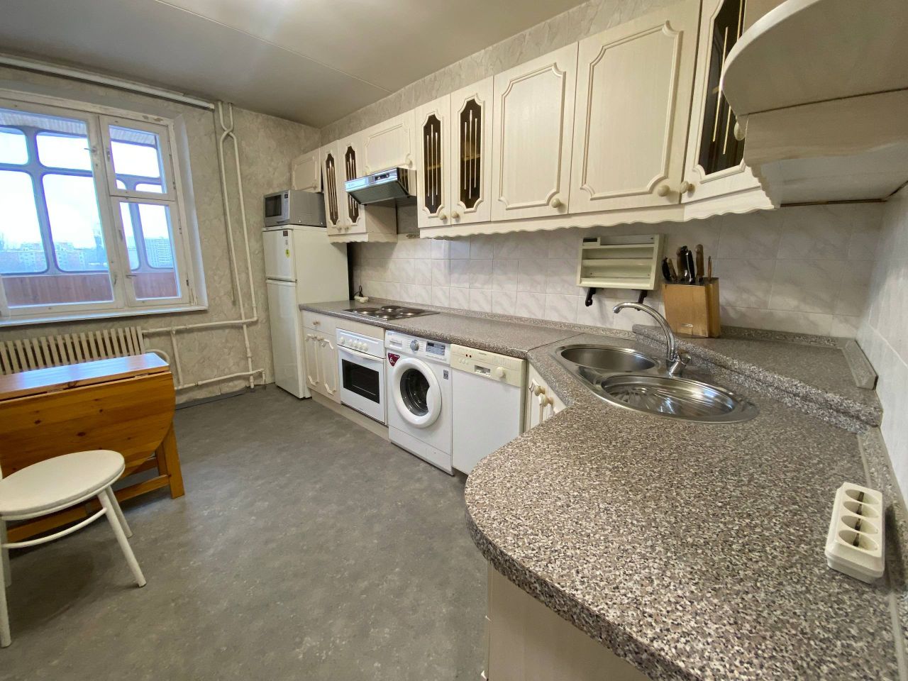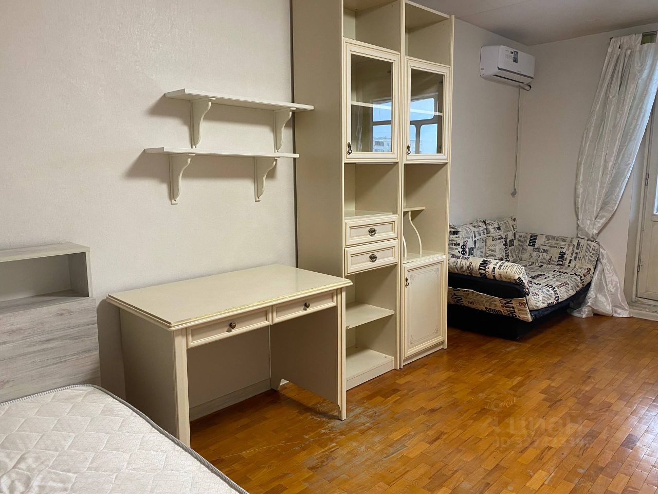 О КВАРТИРЕ: в КОМНАТЕ - большой вместительный шкаф и комод для одежда, рабочий стол со стеллажом. Двуспальная кровать и диван раскладной. КУХНЯ - остается вся кухня и техника. САНУЗЕЛ в кафел, новый ремонт. в КОРИДОРЕ - шкаф для вашей одежды.